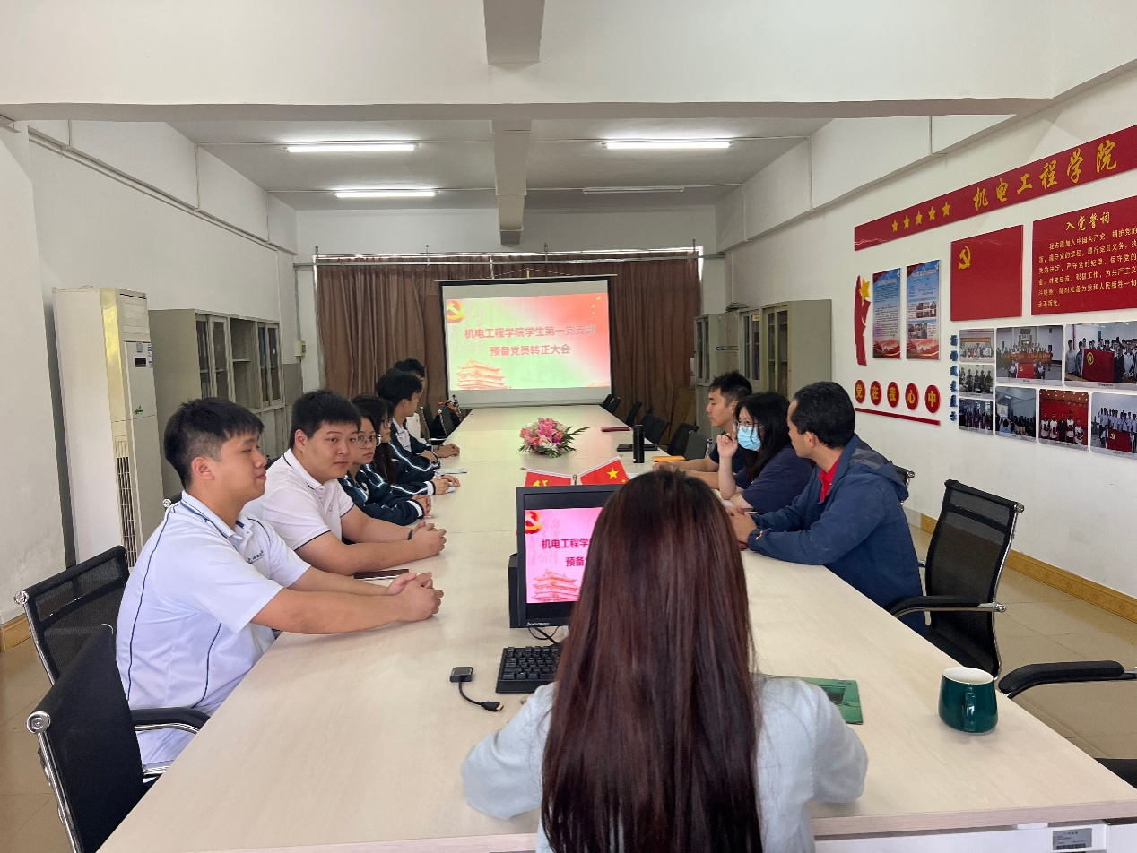 伟德国际1946亚洲版员工第一党支部在建工机电楼305A会议室召开党员大会,议题是讨论陈方孝等6名同志的转正问题。支部书记袁燕娇支持会议,其他党员同志参会。