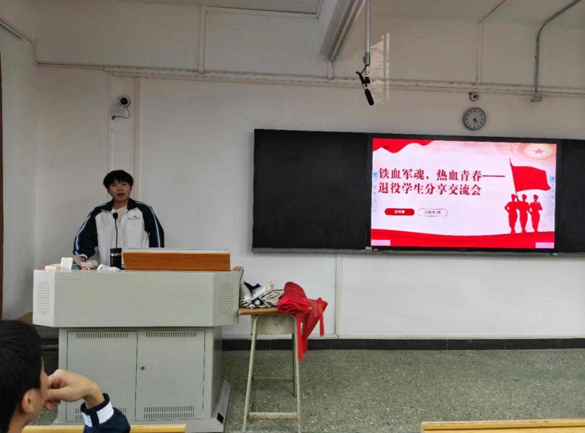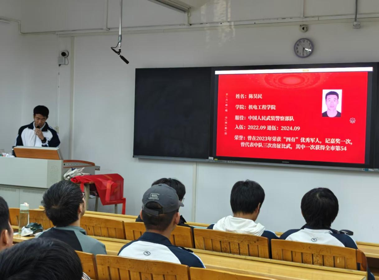 梁梓豪同学以“铁血军魂,热血青春”为主题,生动讲述了他在西藏边境的突发演习和坦克训练等军旅生活中的精彩故事,他分享的军旅生活引起了各位同学浓厚的兴趣。陈昊民同学则以“从军营到校园:转变与成长”为题,分享了他从一名普通老员工到成为一名合格军人的心路历程。他强调了在部队中锻炼出的坚韧不拔的精神、团队合作的重要性以及面对困难时如何保持积极乐观的态度。他还特别提到,虽然现在已经回到了平静的校园生活,但那段经历让他更加珍惜现在的学习机会,并且学会了更好地规划自己的未来。郑梓瀚同学最后登场,他的分享内容是“责任与担当——我的军旅感悟”。通过一系列真实案例,郑梓瀚向在场师生展示了作为一名士兵所肩负的责任之重。无论是执行任务时的勇敢无畏还是日常生活中对战友们的关心照顾,都体现了他对这份职业深深的热爱与尊敬。此外,他还鼓励在座的每一位同学都要勇于承担起个人和社会责任,无论将来从事何种职业,都应该像军人一样严格要求自己,不断进步。
