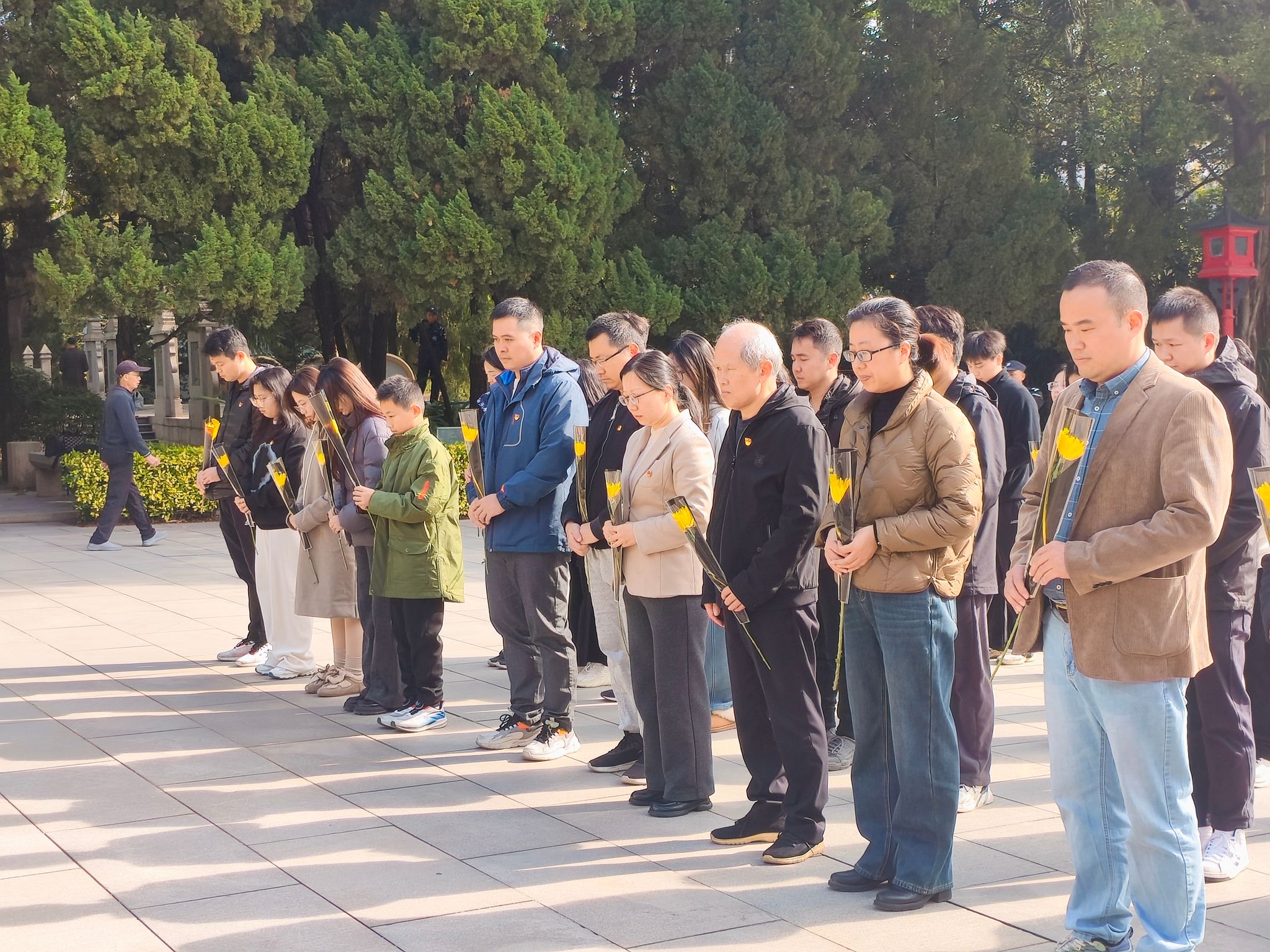 全体党员神情肃穆,怀揣着对先烈的无限敬意,走进黄花岗七十二烈士陵园。党员教师们缓缓走向烈士墓前,为烈士们献上花束。随后,全体教师党员为那些为国家独立和民族解放事业英勇献身的烈士们默哀致敬。在这静谧的氛围中,每个人的心中都涌起对先烈们丰功伟绩的深切缅怀,他们的英勇事迹和崇高精神,如同璀璨星辰,照亮了历史的天空。