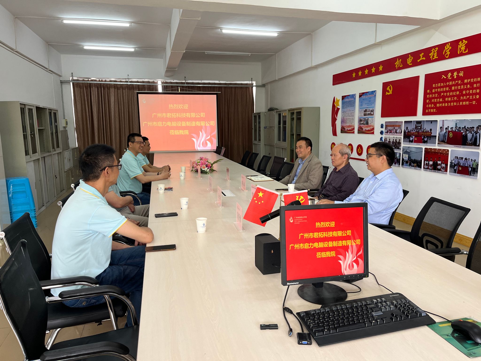 4月9日上午,广州市君拓科技有限公司一行到访公司,就项目联合开发、产教融合、员工培养与就业等校企合作事宜开展深入洽谈。洽谈在建工机电楼305A会议室开展,经理周立求、副经理李有兵、办公室主任罗志高及君拓科技企业代表共同参与。
