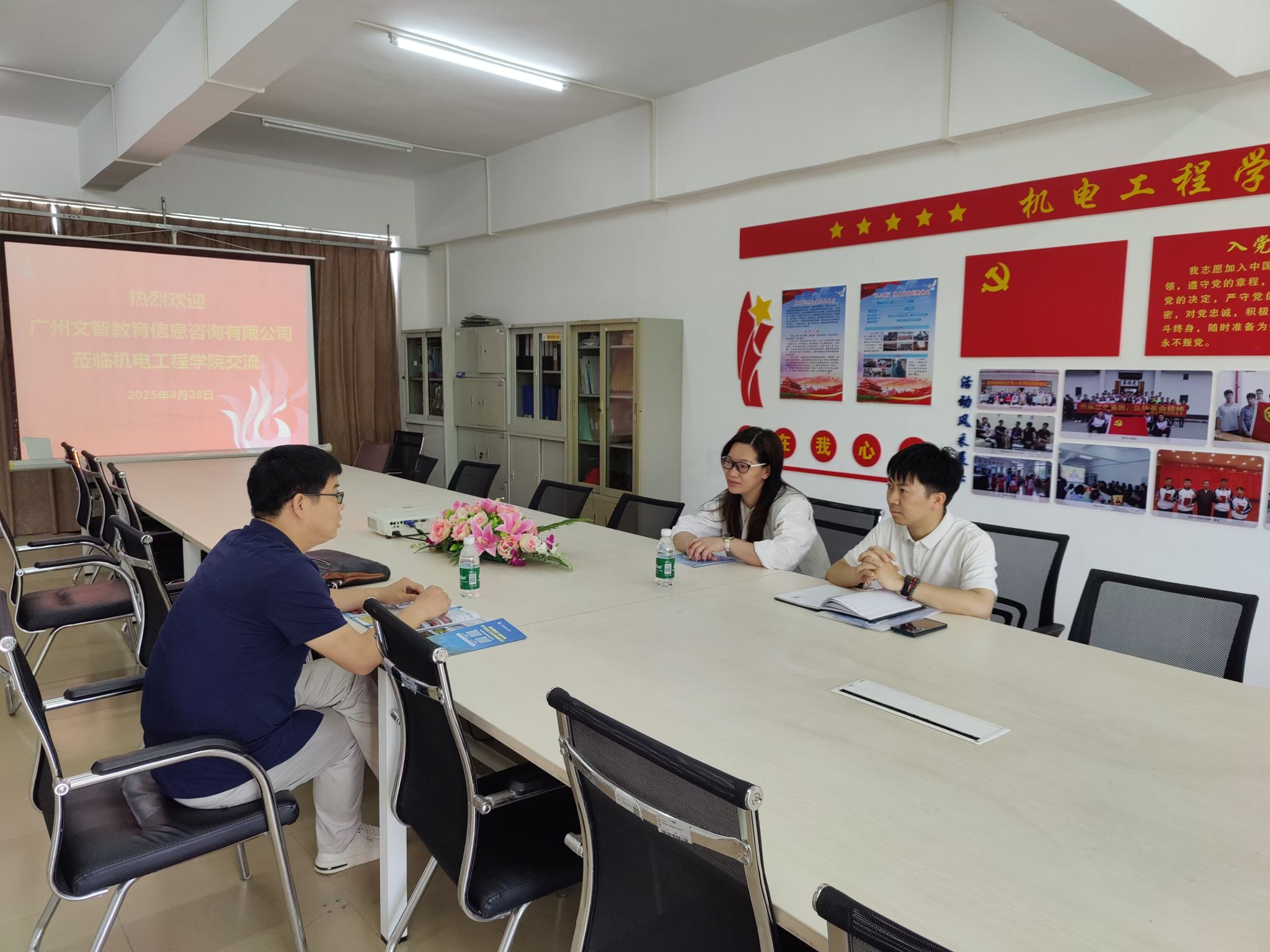 4月28日上午,广州文智教育信息咨询有限公司总经理苏日润到访公司,就深化校企合作、推进产教融合等议题展开交流洽谈。公司副经理李奕萍、校企合作专员徐浩荣出席本次会议。