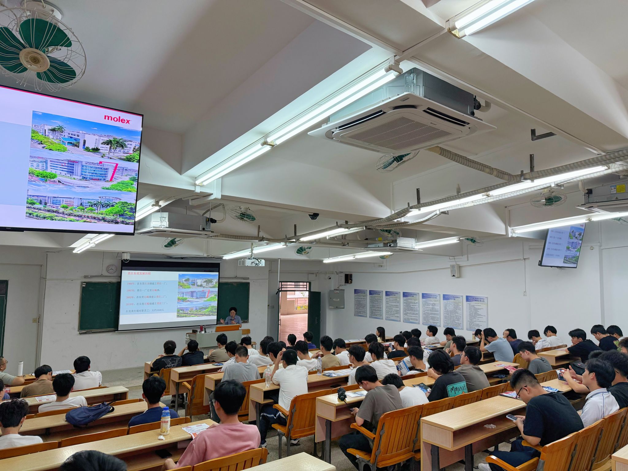 企业代表介绍,具有36年发展历史的东莞莫仕连接器有限公司,是全球电子连接器领导者Molex集团在华重要生产基地。宣讲会上重点展示了其在高速传输连接器领域的突破性成果,特别是在5G通讯基站、新能源汽车三电系统、智能医疗设备等高端制造领域的创新应用。