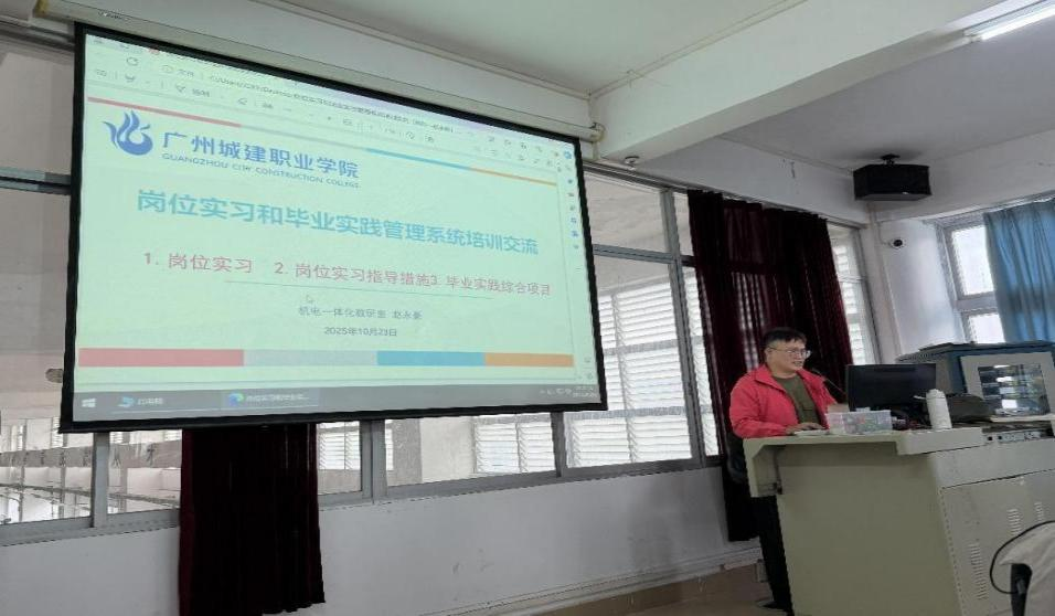 机电一体化教研室赵永豪副主任对毕业实践整体安排及工作要求进行解读,围绕实践时间节点、任务指导重点、考核标准三大核心内容展开现场说明。赵永豪副主任通过演示系统操作,逐一讲解教师端核心功能的操作要点:指导教师需核对员工信息,确认无误后,通过系统向员工下发任务书,并展开毕业实践设计和撰写报告流程;“过程管理” 模块需定期更新,按照系统里的活动类型进行工作执行,把活动日期和内容,以及活动过程照片清晰记录到系统里;“实践管理” 模块需重点把控作品的完整性,对不符合要求的毕业作品需及时退回员工补充完善,并跟踪修改进度,确保毕业作品高质量完成。针对毕业实践工作的常见问题,赵永豪副主任着重强调两项注意事项:一是上传的作品需严格遵循规范的格式要求;二是明确各工作时间节点要求。