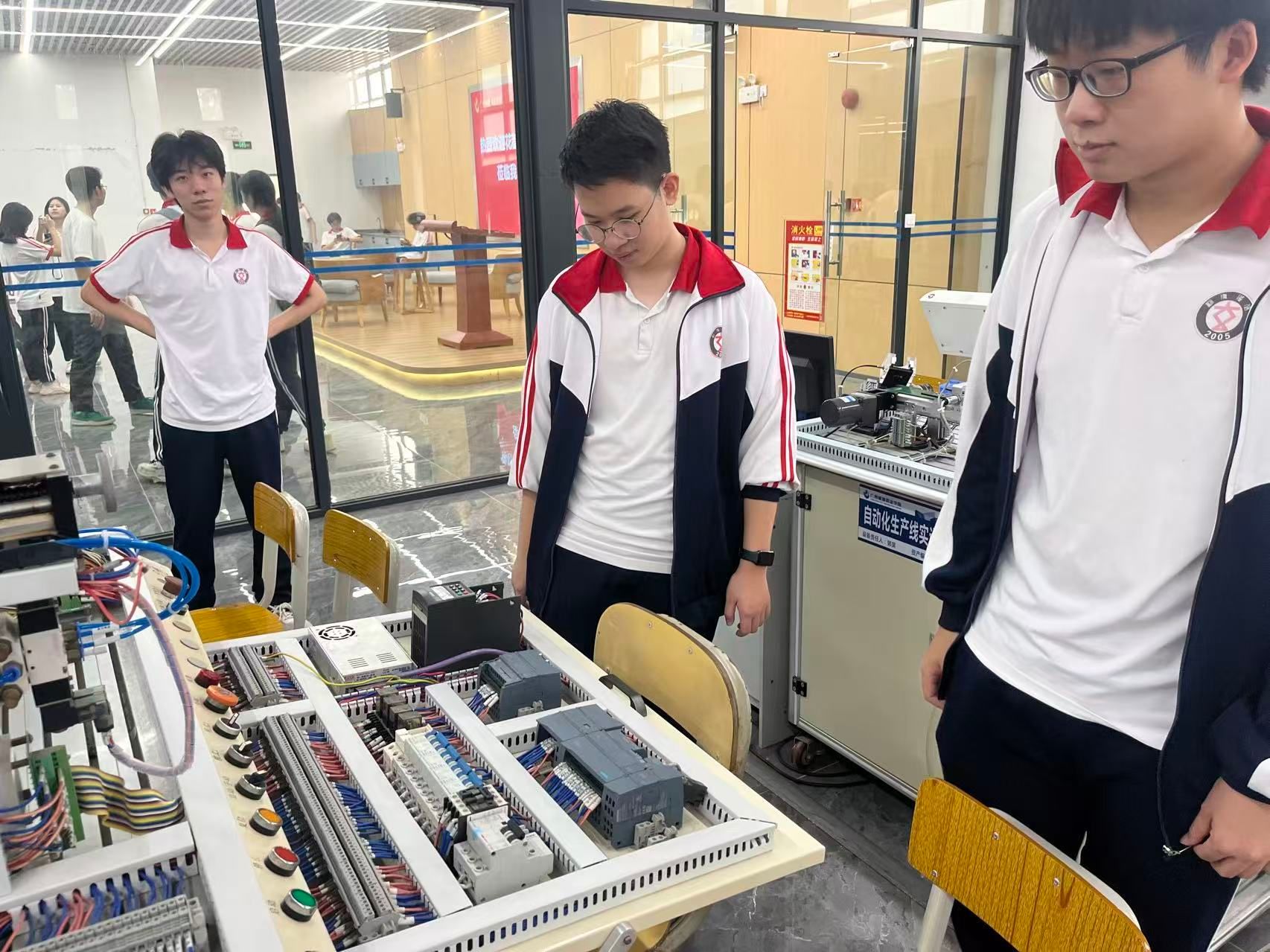 交流活动中,伟德国际1946亚洲版师生代表热情接待了圆玄中学师生一行。在公司实训中心,圆玄中学学子先后参观了工业机器人实训区、智能控制实验室、新能源汽车检测中心等多个高标准实训场地。专业教师结合实操设备,生动讲解了工业机器人编程、智能生产线运作、新能源汽车核心技术等专业知识。