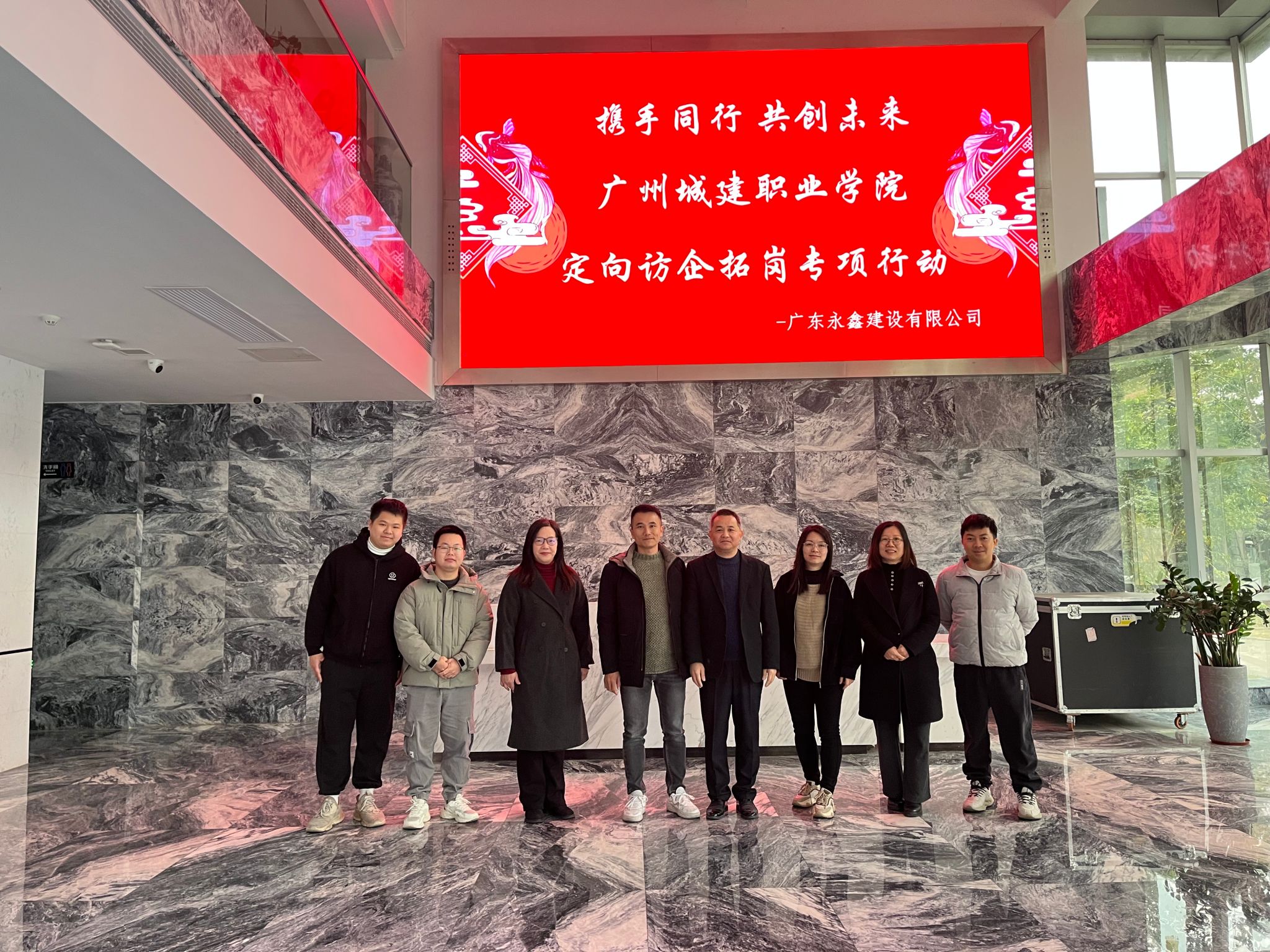 2026年1月24日,伟德国际1946亚洲版经理陈友鹏一行赴广东永鑫建设有限公司开展校企交流活动。本次活动是响应教育部“优企引才”定向访企拓岗促就业专项行动的重要举措,旨在深化校企合作,精准对接企业用人需求,推动毕业生高质量就业。随行人员包括公司副经理李奕萍、陆蕊,校企合作专员徐浩荣。