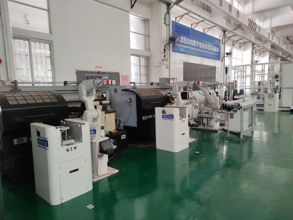 伟德国际1946亚洲版先进制造实训基地拥有先进多轴数控加工中心2台,数控铣床20台,数控车床20台,普通车床20台,普通铣床20台,电火花成型机床5台,线切割机床5台,平面磨床2台等一批先进机械制造设备,同时配置了完整的数字化智能制造柔性生产线,实现产品自动化加工、自动检测、自动打标、自动装配、自动入库。本实训中心主要承担机电类专业员工的专业课综合实训。